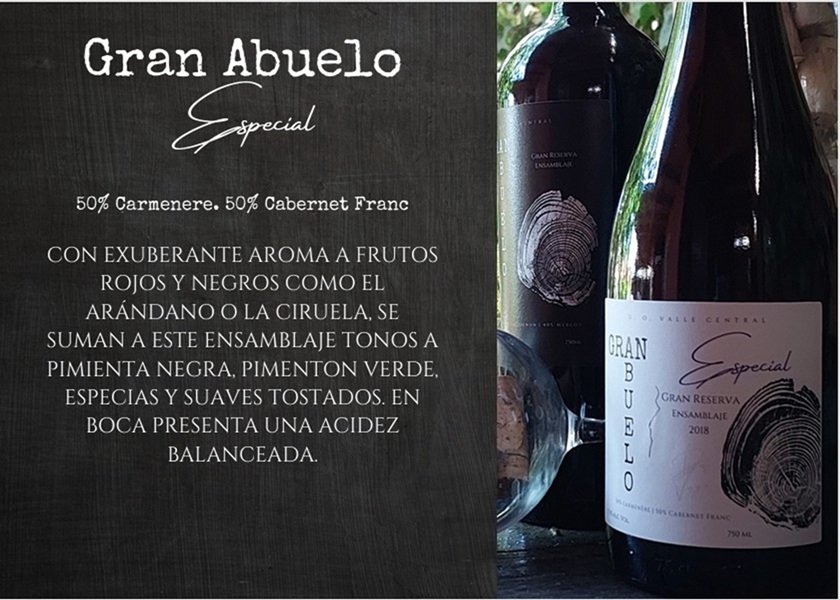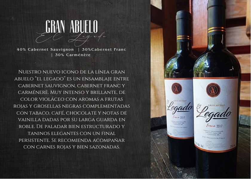 Gran reserva compuesto por 40% cabernet souvignon, 30% cabernet franc y 30% carmeneré.